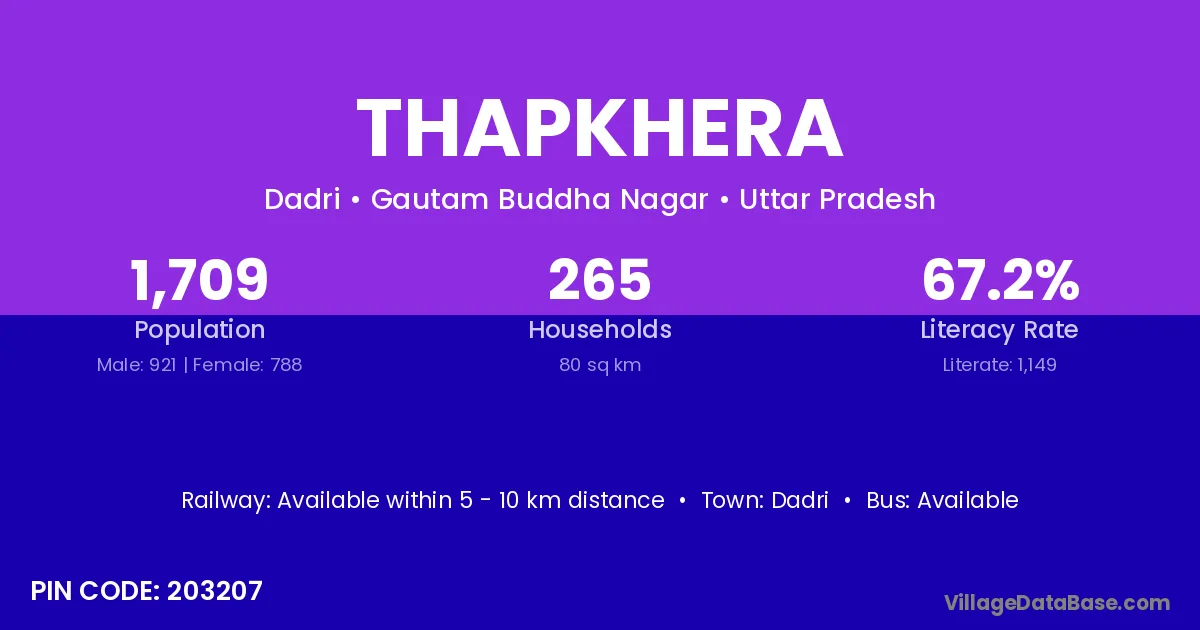 Dadri is the nearest town to Thapkhera village for major economic activities