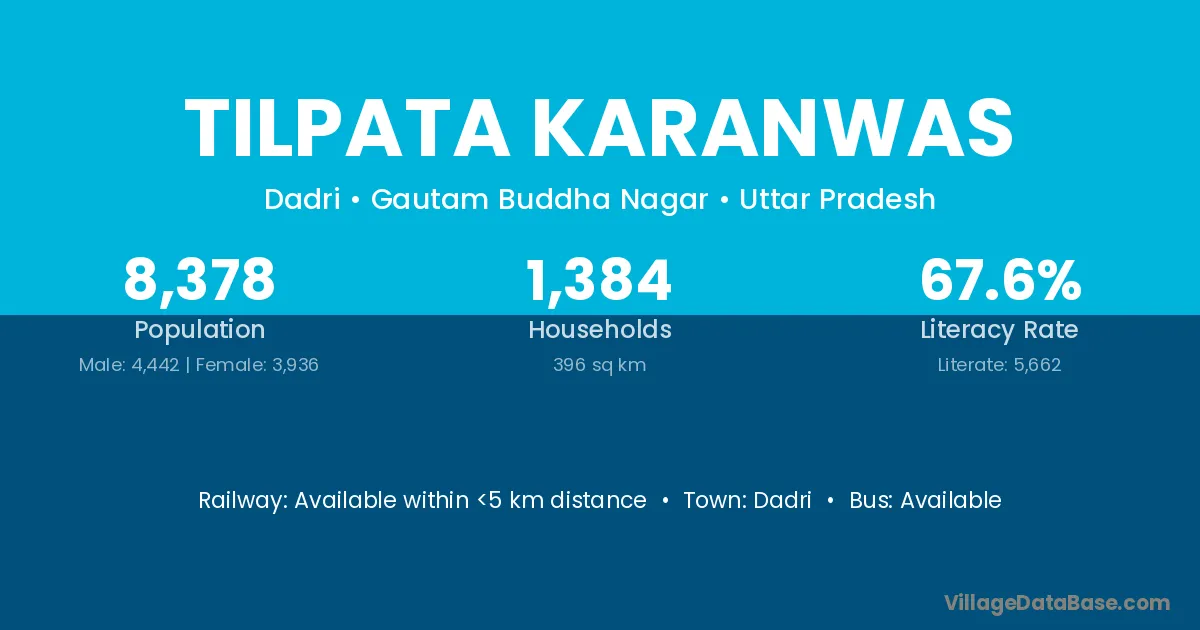 There are approximately 1,384 households in Tilpata Karanwas village.