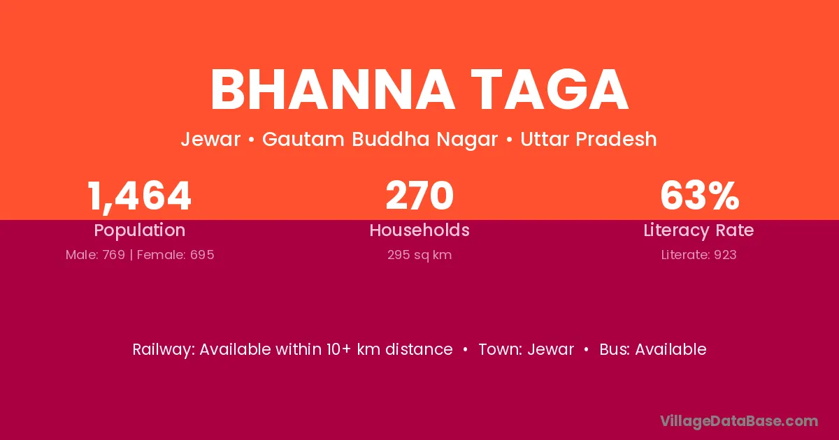 Jewar is the nearest town to Bhanna Taga village for major economic activities