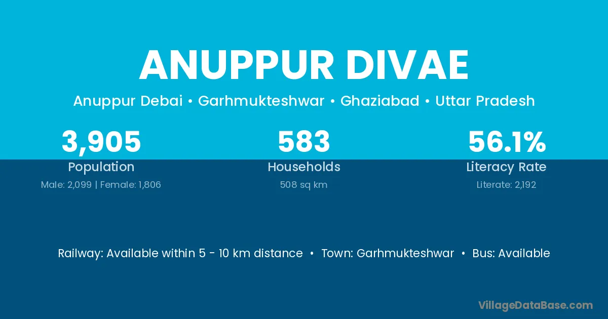 Garhmukteshwar is the nearest town to Anuppur Divae village for major economic activities