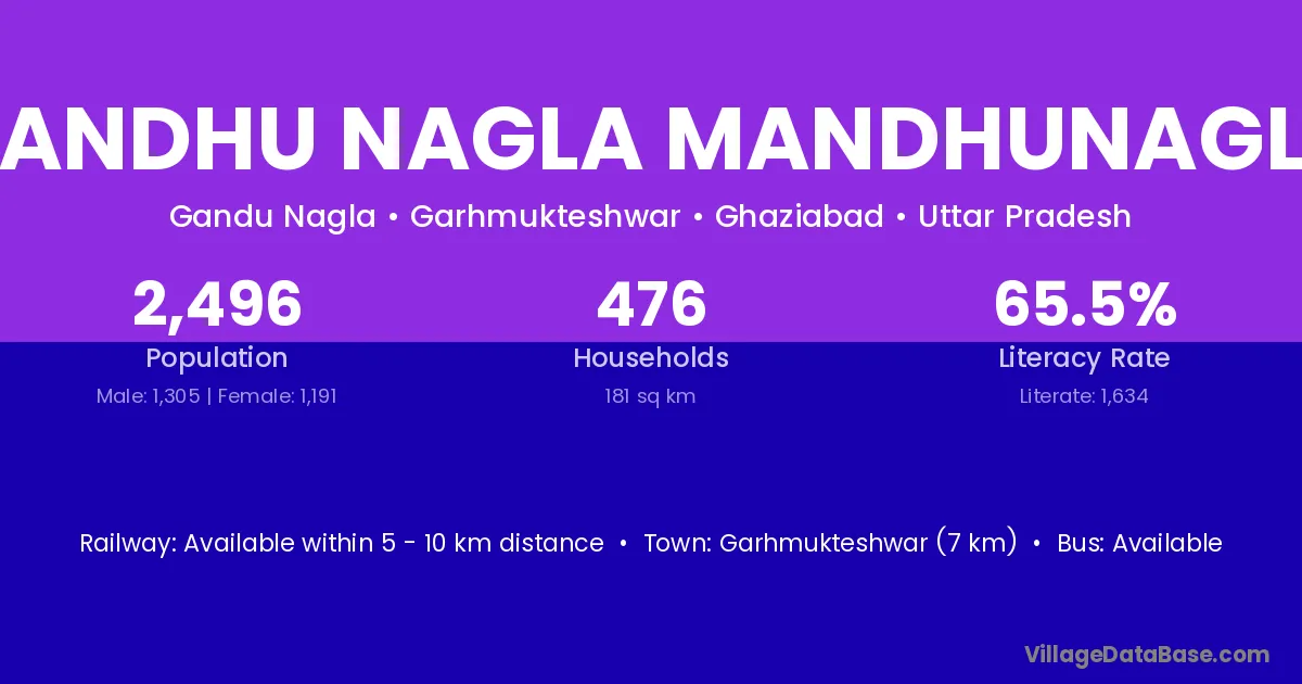 Garhmukteshwar (7 km) is the nearest town to Gandhu Nagla Mandhunagla village for major economic activities and is located approximately 7 km away.