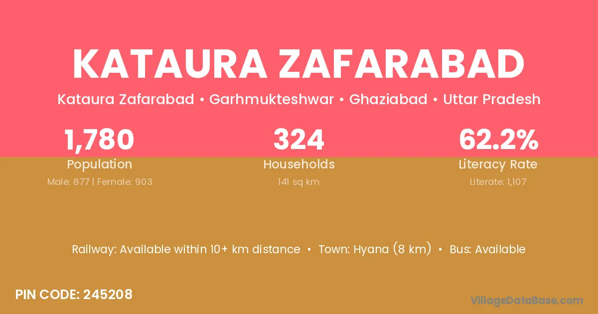 Kataura Zafarabad village has a total population of 1,780 people, of which 877 are males and 903 are females.