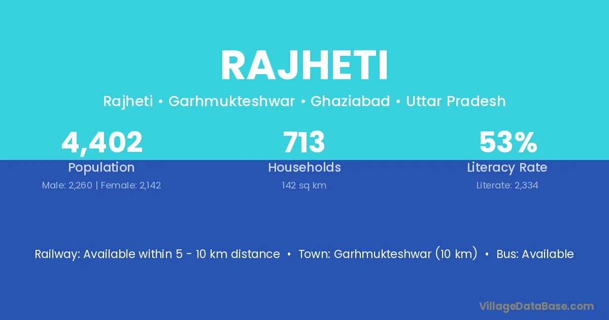 Garhmukteshwar (10 km) is the nearest town to Rajheti village for major economic activities and is located approximately 10 km away.