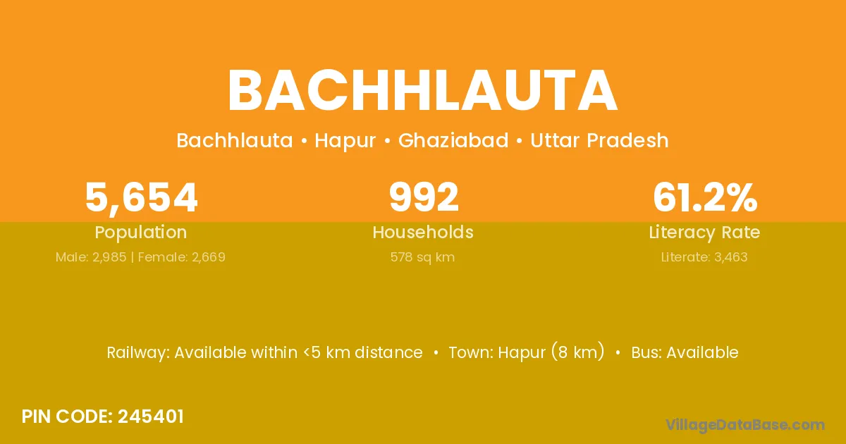 Hapur (8 km) is the nearest town to Bachhlauta village for major economic activities and is located approximately 8 km away.