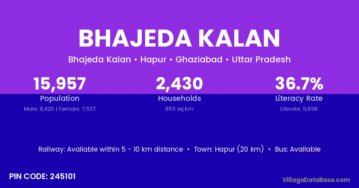 Hapur (20 km) is the nearest town to Bhajeda Kalan village for major economic activities and is located approximately 20 km away.