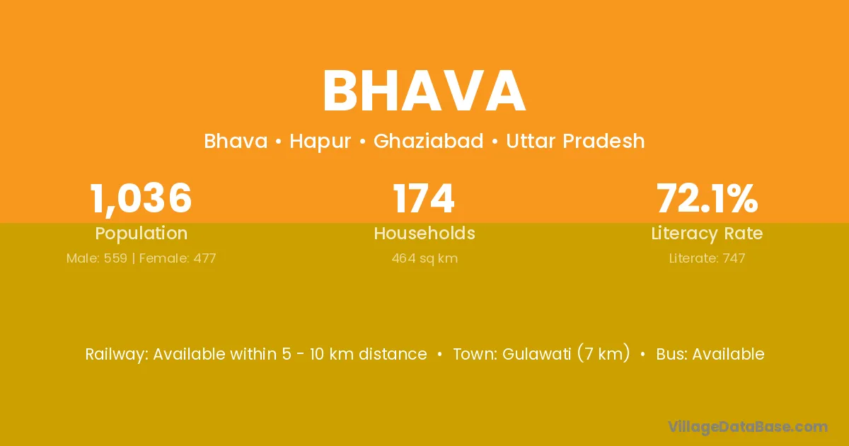 Gulawati (7 km) is the nearest town to Bhava village for major economic activities and is located approximately 7 km away.