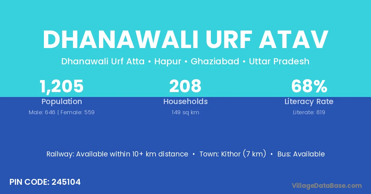 Dhanawali Urf Atav village has a total population of 1,205 people, of which 646 are males and 559 are females.