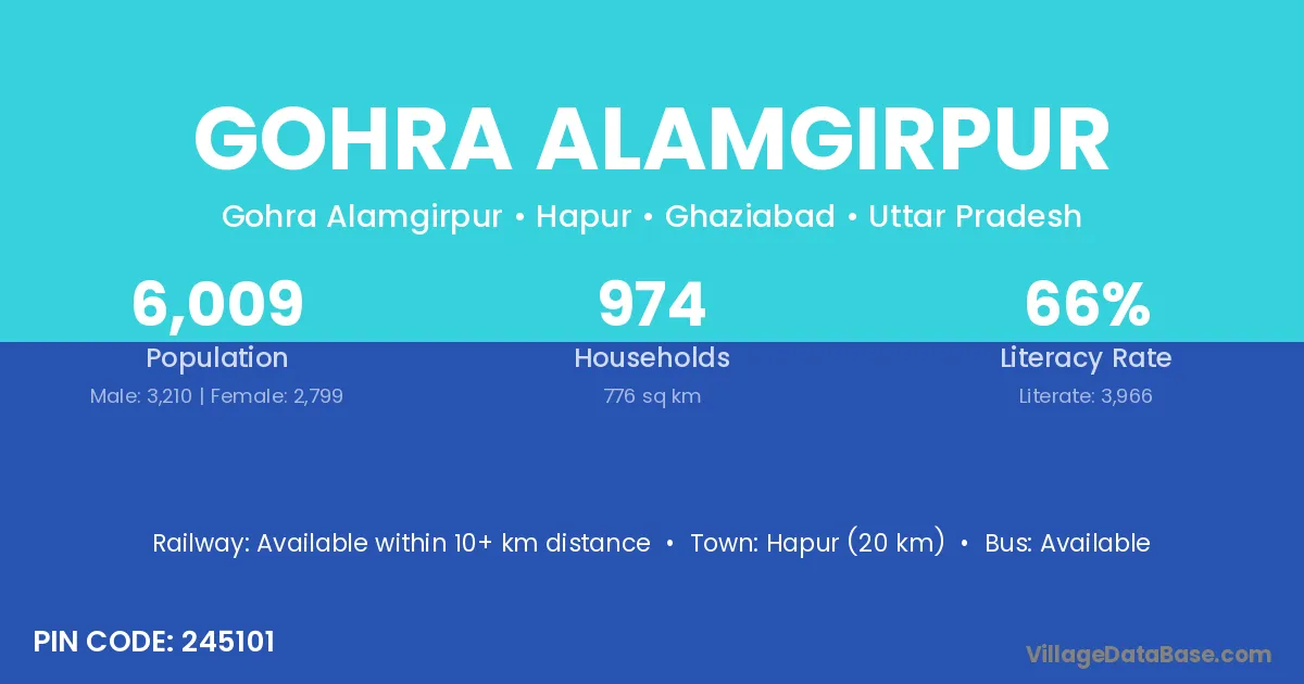 Hapur (20 km) is the nearest town to Gohra Alamgirpur village for major economic activities and is located approximately 20 km away.