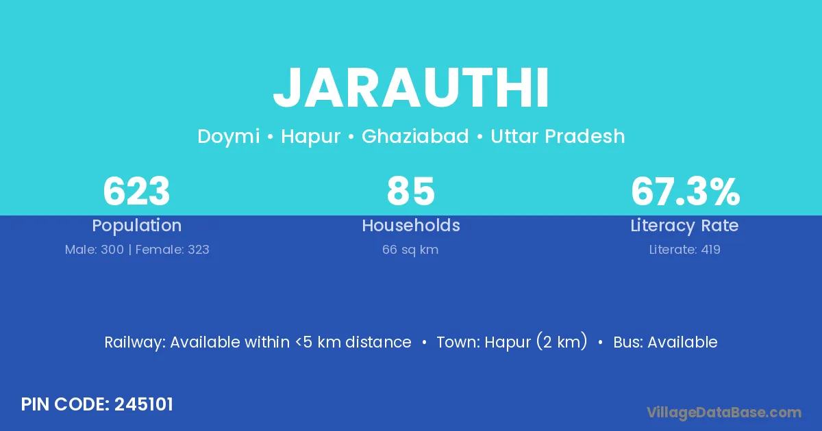 Hapur (2 km) is the nearest town to Jarauthi village for major economic activities and is located approximately 2 km away.