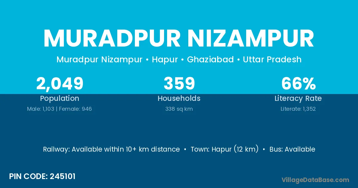 Hapur (12 km) is the nearest town to Muradpur Nizampur village for major economic activities and is located approximately 12 km away.