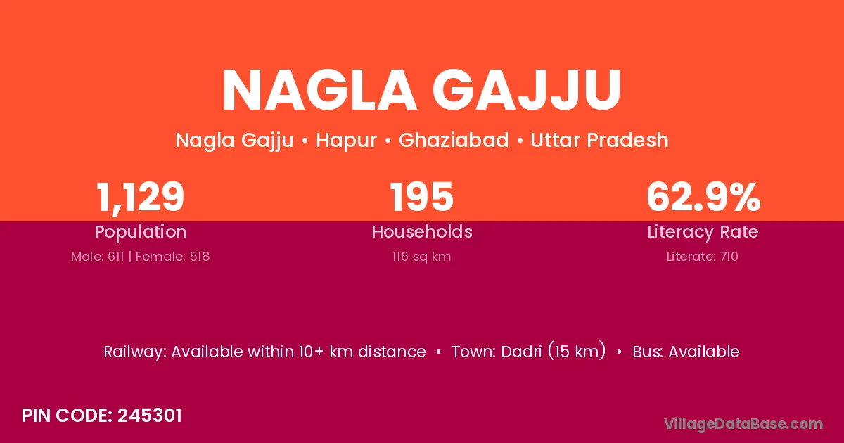 Dadri (15 km) is the nearest town to Nagla Gajju village for major economic activities and is located approximately 15 km away.