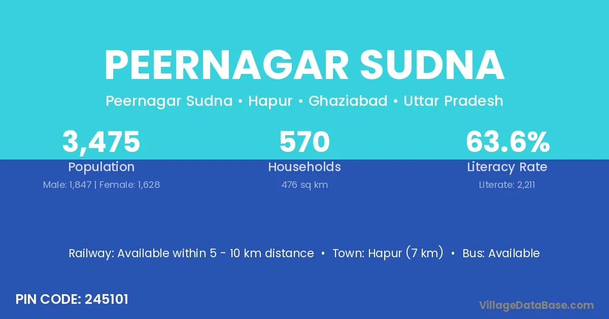 Hapur (7 km) is the nearest town to Peernagar Sudna village for major economic activities and is located approximately 7 km away.