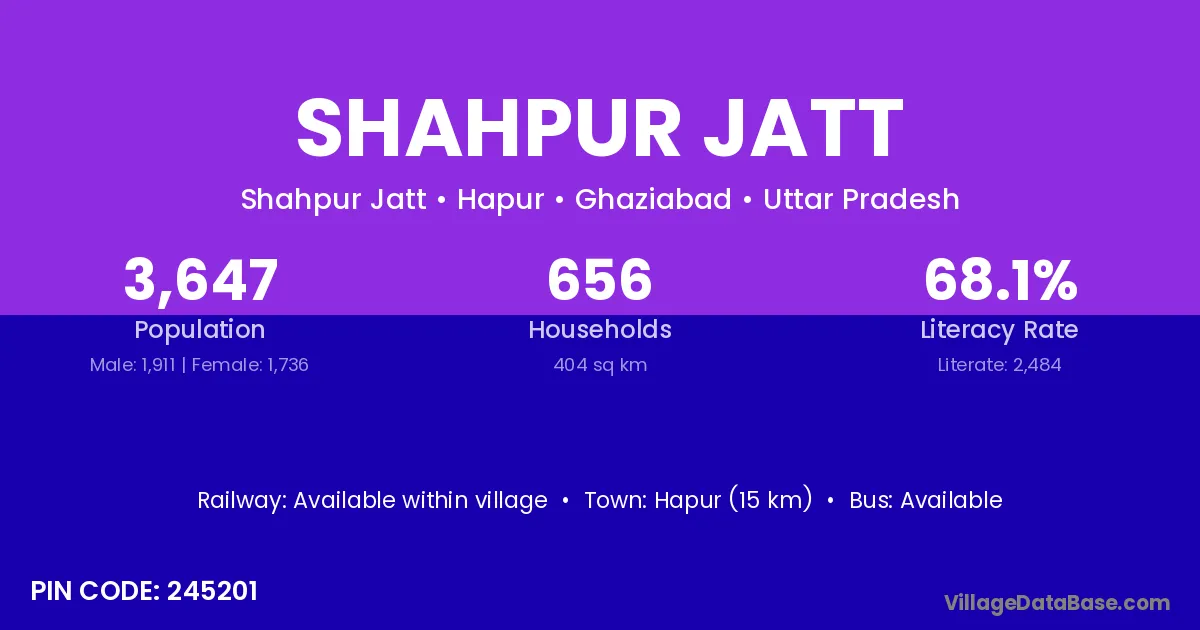 Hapur (15 km) is the nearest town to Shahpur Jatt village for major economic activities and is located approximately 15 km away.