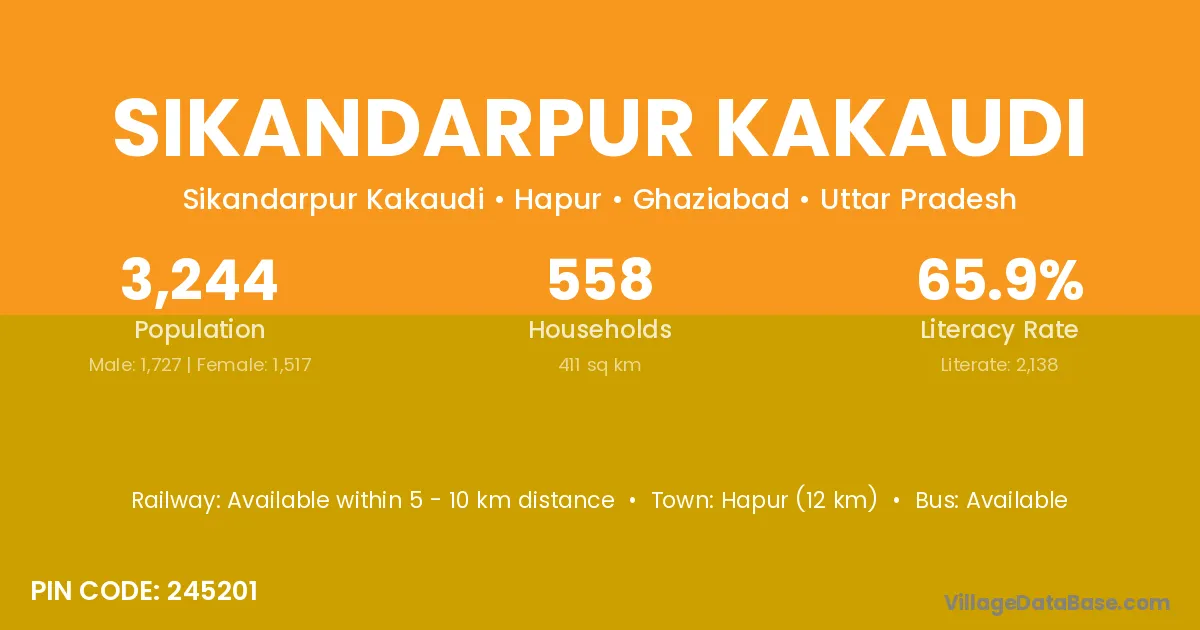 Hapur (12 km) is the nearest town to Sikandarpur Kakaudi village for major economic activities and is located approximately 12 km away.