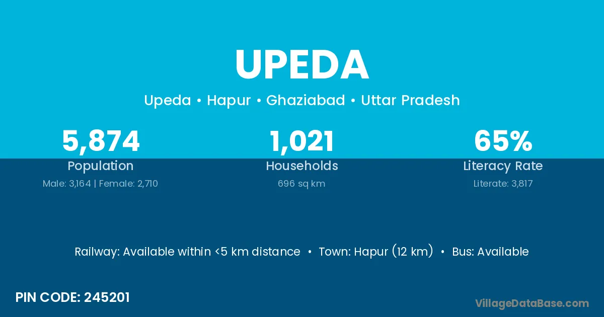 Hapur (12 km) is the nearest town to Upeda village for major economic activities and is located approximately 12 km away.