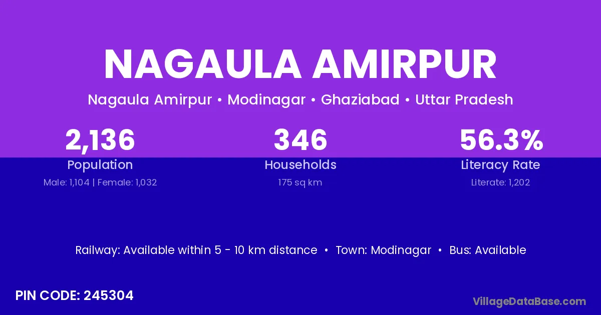 Nagaula Amirpur village has a total population of 2,136 people, of which 1,104 are males and 1,032 are females.