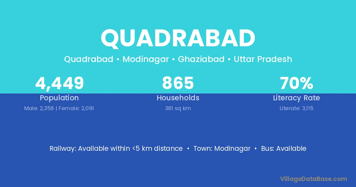 Modinagar is the nearest town to Quadrabad village for major economic activities