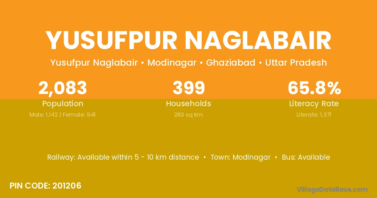 Yusufpur Naglabair village has a total population of 2,083 people, of which 1,142 are males and 941 are females.