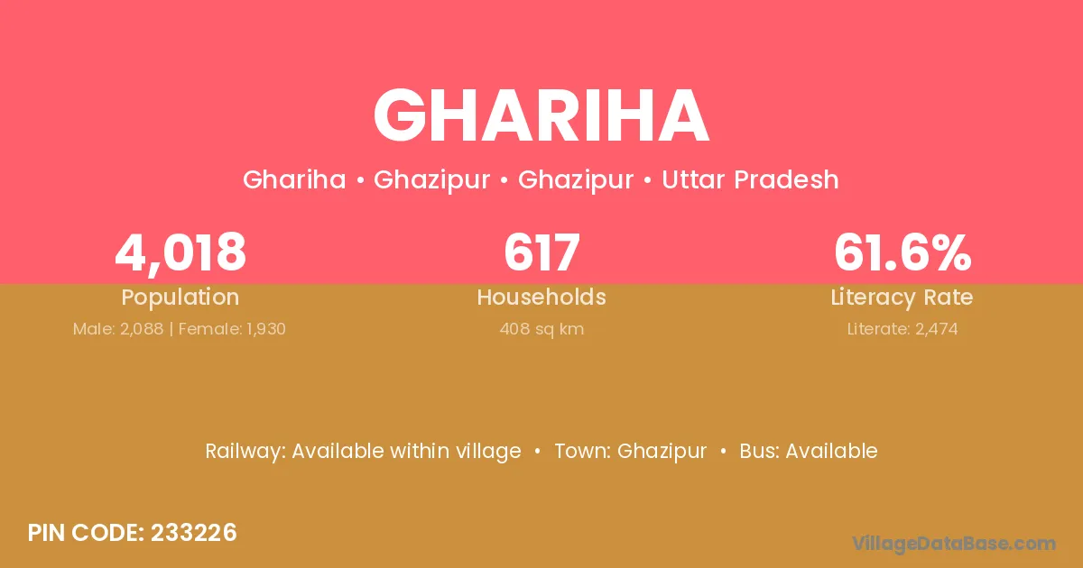 Ghazipur is the nearest town to Ghariha village for major economic activities