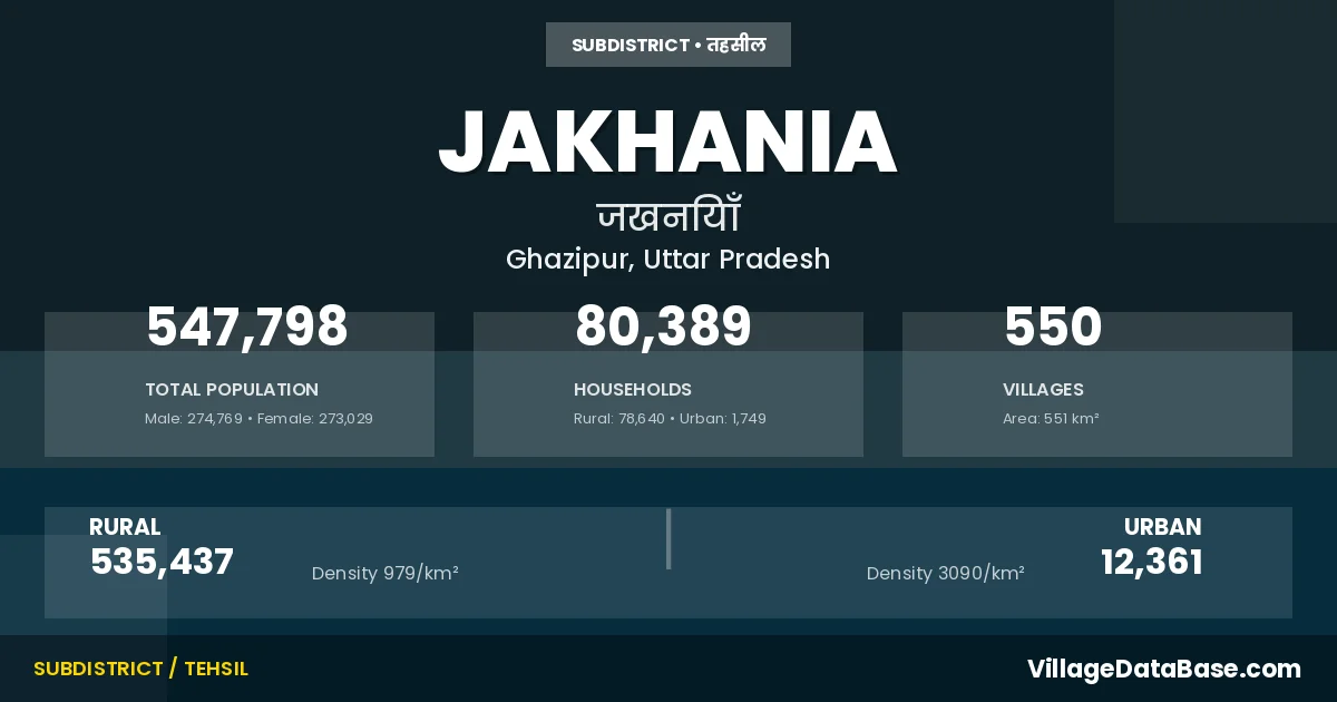 Jakhania is a town and Tehsil in the Ghazipur district of the Uttar Pradesh. In India, a Tehsil is a subdivision of a district responsible for the administration and revenue collection of a specific area within the district. Tehsils play a crucial role in the local governance structure, contributing significantly to the development and administration of their communities.