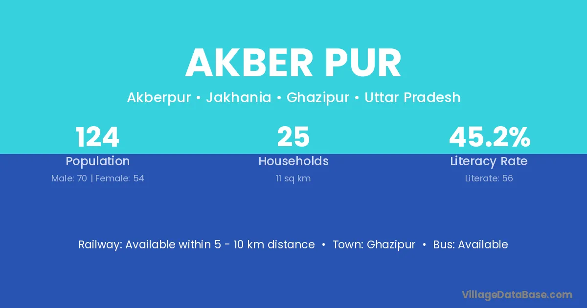 Ghazipur is the nearest town to Akber Pur village for major economic activities