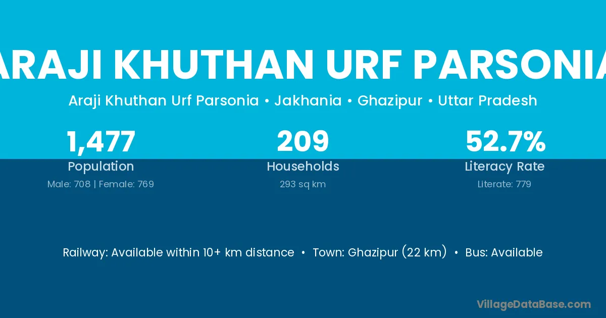 Araji Khuthan Urf Parsonia village has a total population of 1,477 people, of which 708 are males and 769 are females.