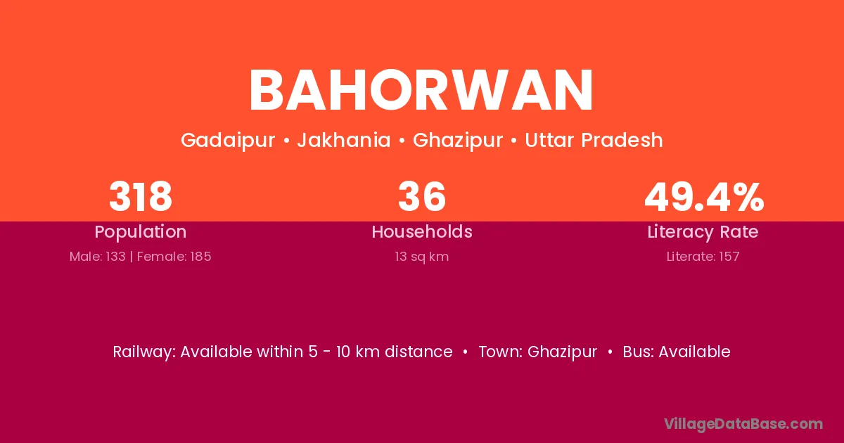 Ghazipur is the nearest town to Bahorwan village for major economic activities