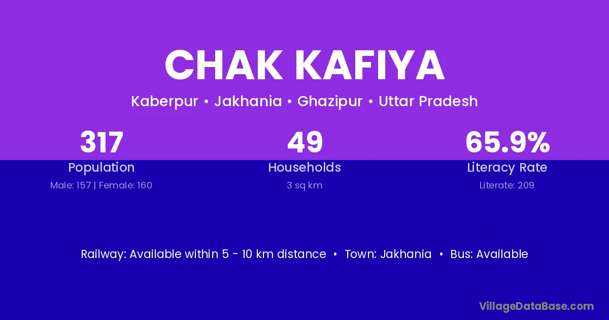 Jakhania is the nearest town to Chak Kafiya village for major economic activities