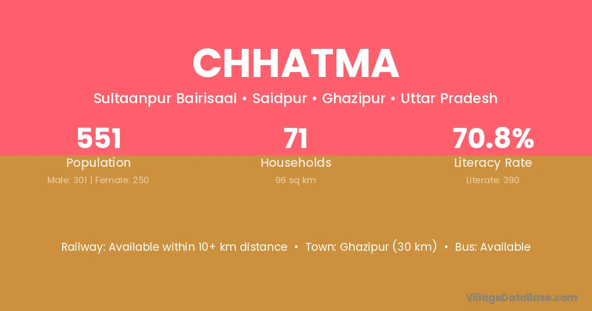 Jakhania is the nearest town to Chhatma village for major economic activities