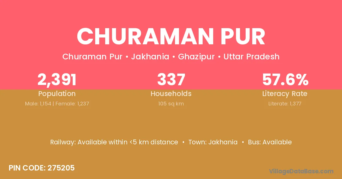 Jakhania is the nearest town to Churaman Pur village for major economic activities