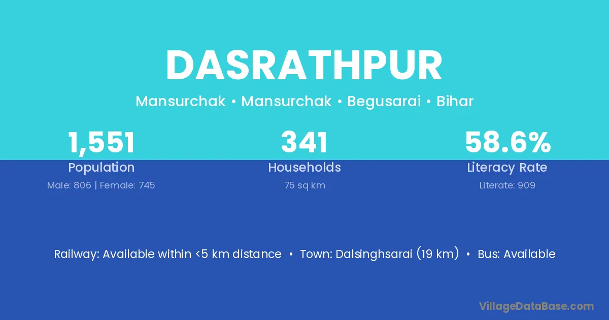 Dasrathpur village has a total population of 362 people, of which 193 are males and 169 are females.