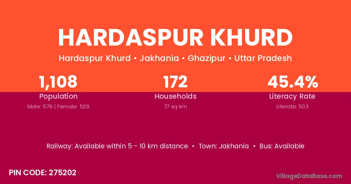 Jakhania is the nearest town to Hardaspur Khurd village for major economic activities