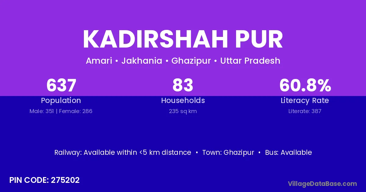 Ghazipur is the nearest town to Kadirshah Pur village for major economic activities