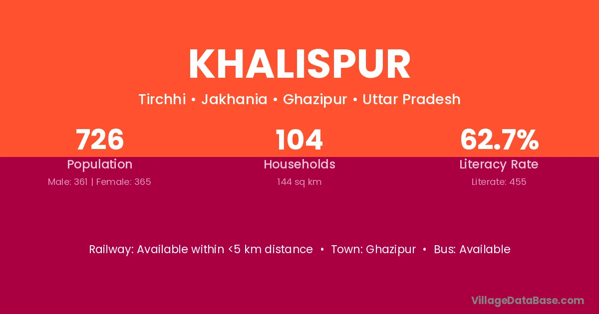 Khalispur village has a total population of 726 people, of which 361 are males and 365 are females.