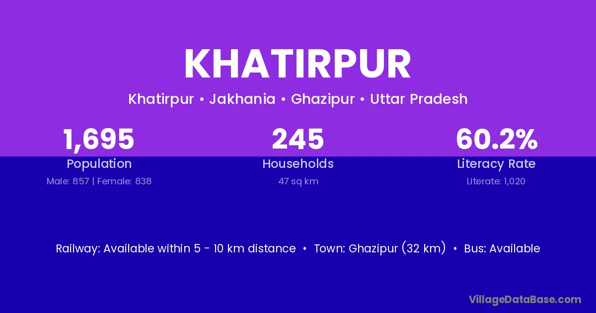Ghazipur (32 km) is the nearest town to Khatirpur village for major economic activities and is located approximately 32 km away.