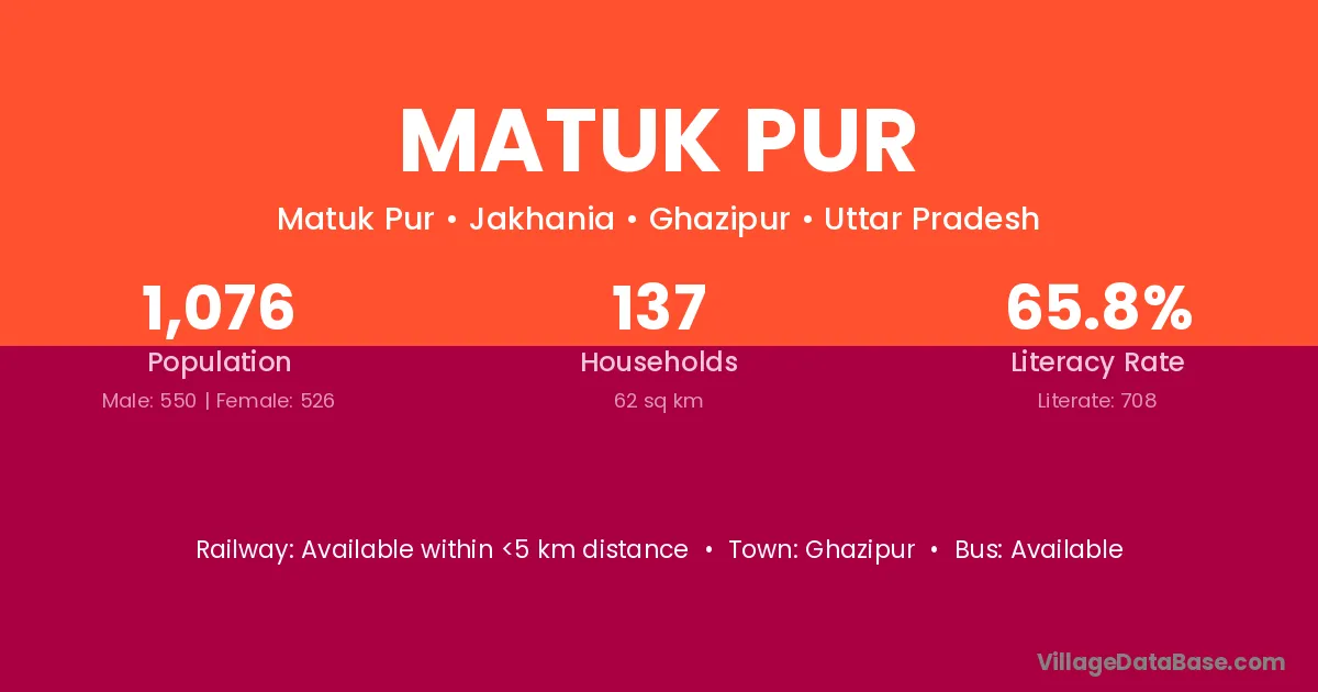 Ghazipur is the nearest town to Matuk Pur village for major economic activities