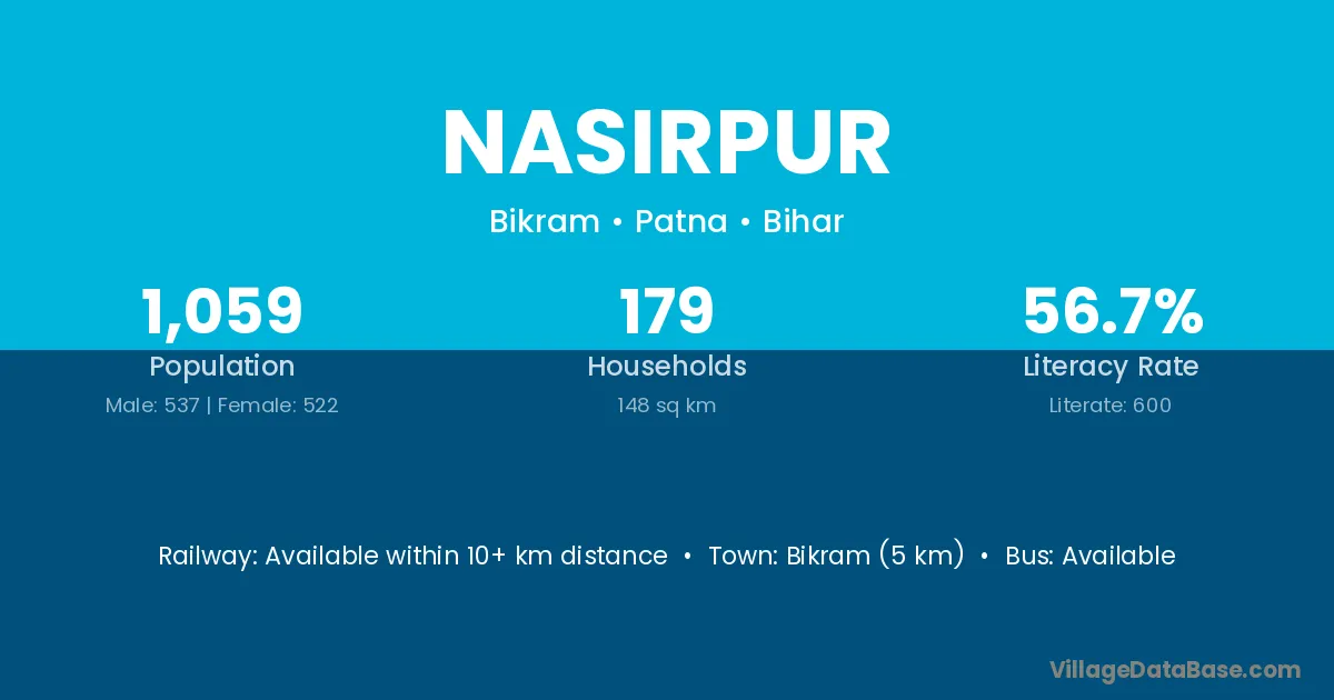 Nasirpur village has a total population of 2,959 people, of which 1,514 are males and 1,445 are females.