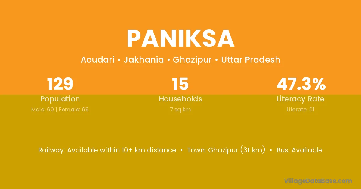 Ghazipur (31 km) is the nearest town to Paniksa village for major economic activities and is located approximately 31 km away.