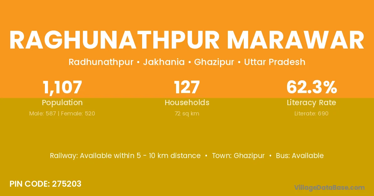 Ghazipur is the nearest town to Raghunathpur Marawar village for major economic activities