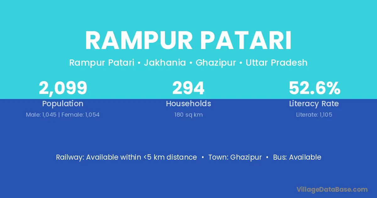 Ghazipur is the nearest town to Rampur Patari village for major economic activities