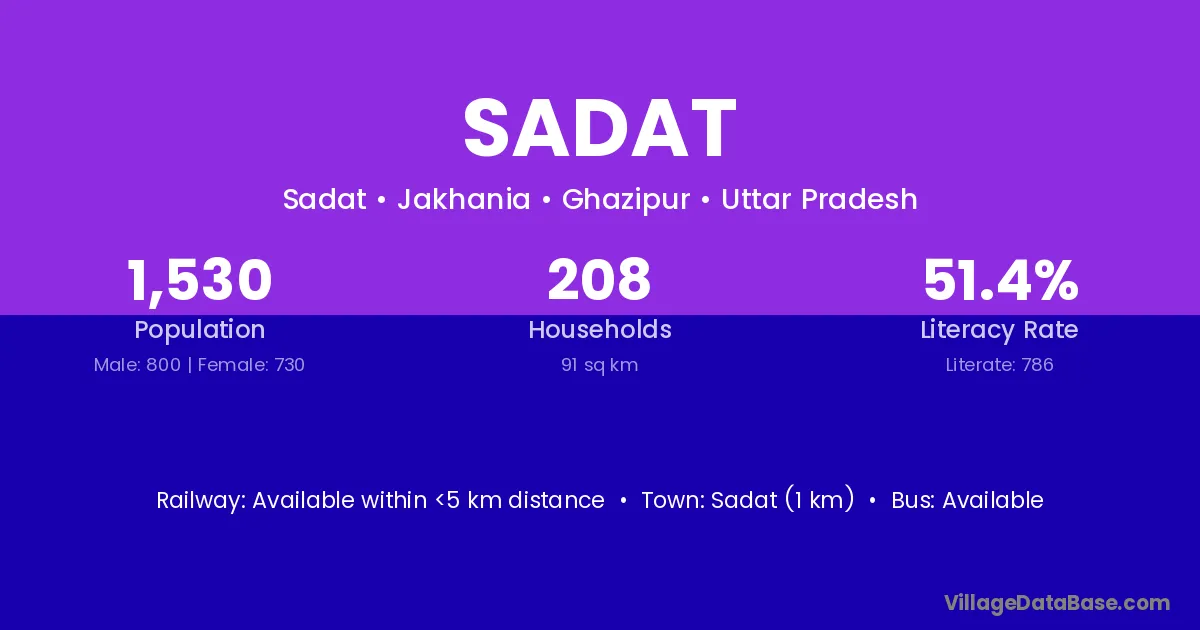 Sadat (1 km) is the nearest town to Sadat village for major economic activities and is located approximately 1 km away.