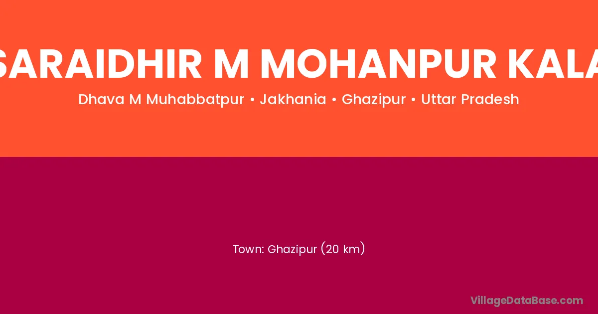 Ghazipur (20 km) is the nearest town to Saraidhir M Mohanpur Kala village for major economic activities and is located approximately 20 km away.