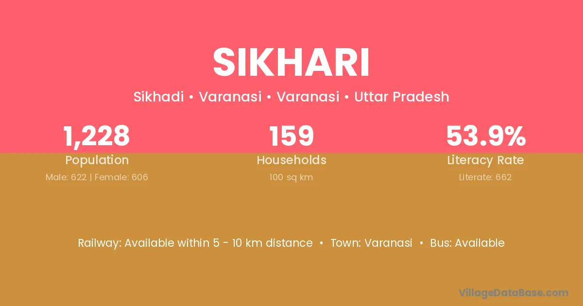 The literacy rate of Sikhari village is 59.08%. Male literacy stands at 69.31% and female literacy at 48.80%.