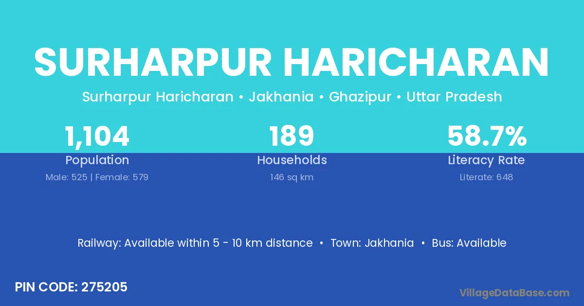 Jakhania is the nearest town to Surharpur Haricharan village for major economic activities