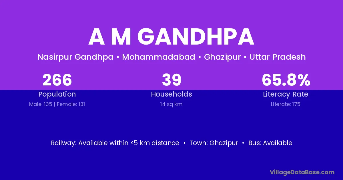 A M Gandhpa village has a total population of 266 people, of which 135 are males and 131 are females.