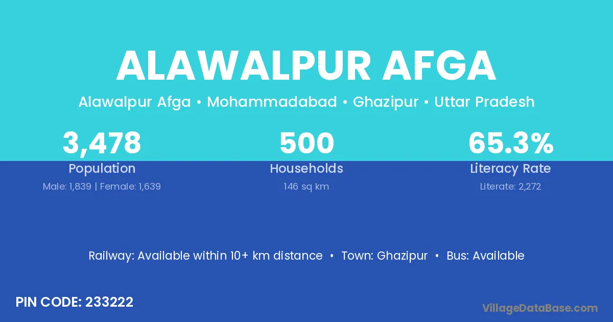 Ghazipur is the nearest town to Alawalpur Afga village for major economic activities