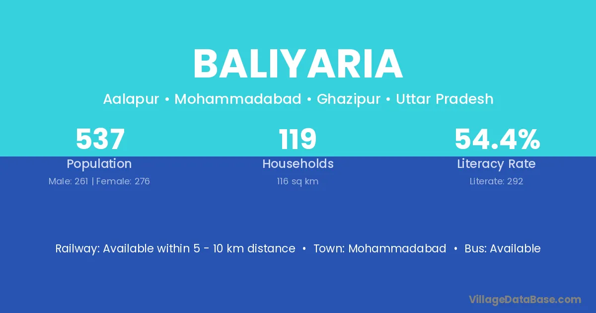 Baliyaria village has a total population of 537 people, of which 261 are males and 276 are females.