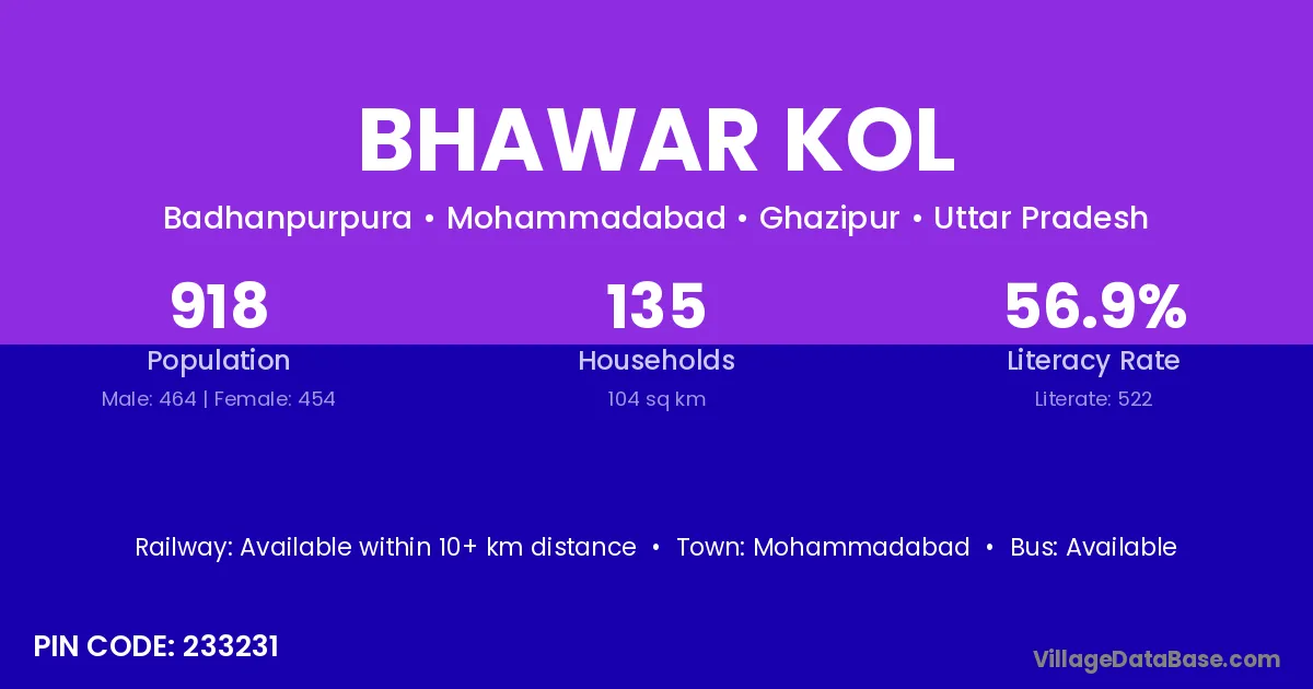 Mohammadabad is the nearest town to Bhawar Kol village for major economic activities