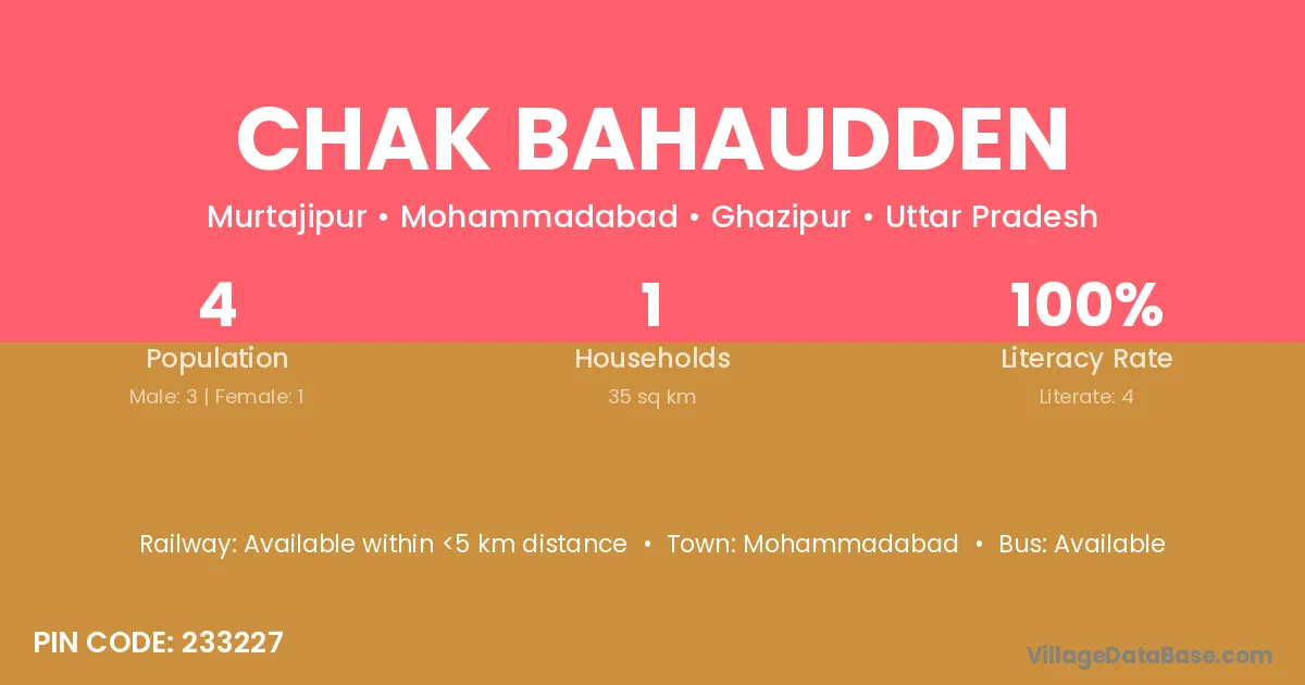 Chak Bahaudden village has a total population of 4 people, of which 3 are males and 1 are females.