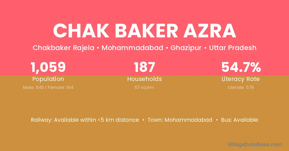 Chak Baker Azra village has a total population of 1,059 people, of which 545 are males and 514 are females.